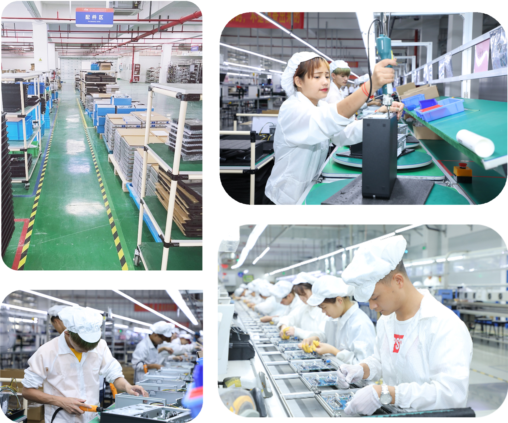 工厂建有技术完备的结构生产车间和电子生产车间,并设有完整的SMT生产线、DIP生产线、整机组装流水线,以及专业的检测和分析设备。