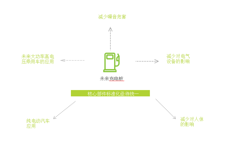 核心部件标准化亟待统一:核心零部件标准的高度统一,在保证满足当前纯电动汽车应用的同时,也能够支持未来乘用车更大的充电功率和更高的充电电压,此外,为更加贴近居民生活区,电桩配件供应商需要提升模块质量,对噪音源进行消音处理,减少充电桩对电气设备、特别是对人体的影响。