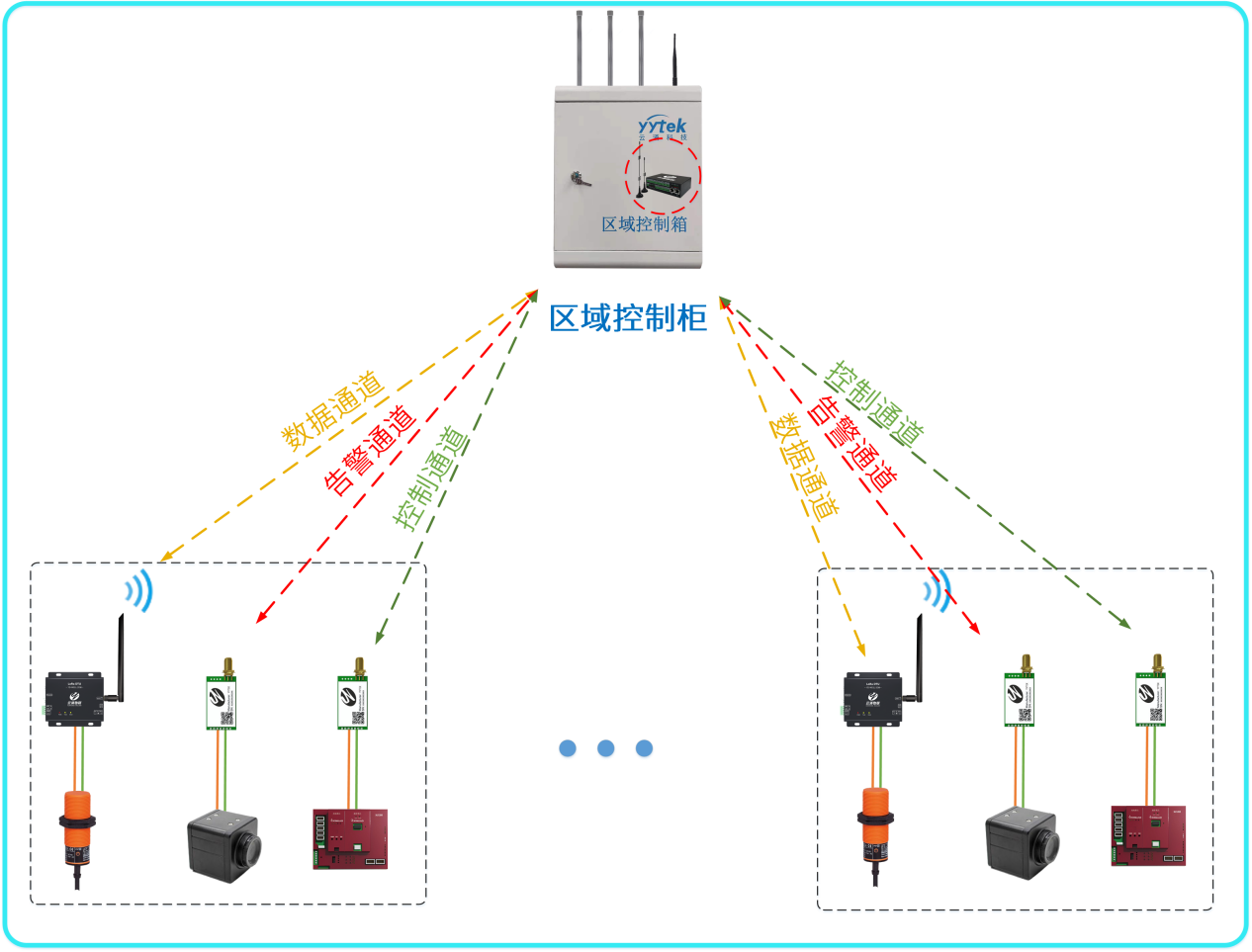 一个厂区可以配备多个区域控制箱,每个控制箱最多配备500-2000个设备节点,每个区域柜都能与工业系统进行对接,也可相互通讯;