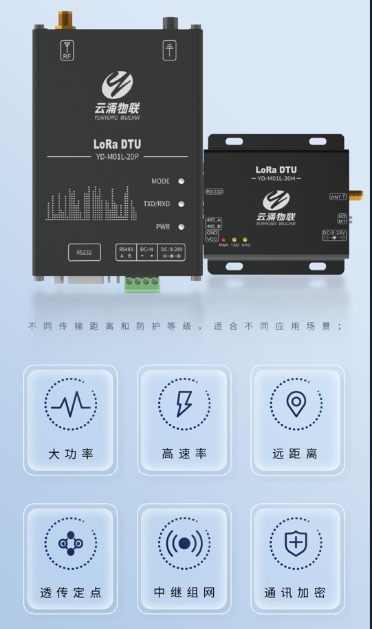 LoRa DTU:带有RS485/232接口(绿端子/标准DB9),分为基础款、增强款和工业款,不同传输距离和防护等级,适合不同澳门银河网上赌场网站;