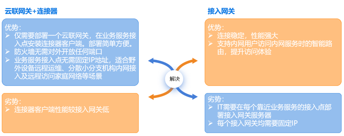 澳门银河网上赌场网站远程办公解决方案支持两种内网访问模式:基于接入网关的访问代理,以及基于云联网关+连接器的内网穿透。客户可以根据自身IT架构及实际需求选择适合的服务访问模式。两种模式可以同时存在。