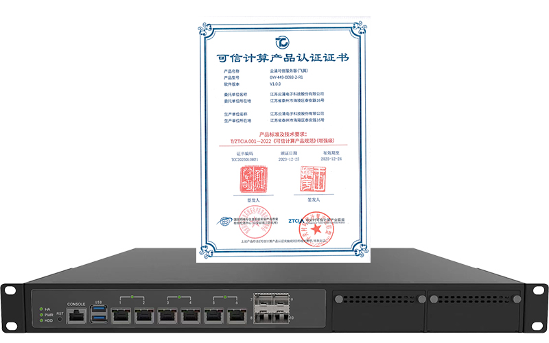 澳门银河网上赌场可信服务器(飞腾) 0YY-449-0093-2-R1以可信计算模块为可信根,凭借安全、稳定、高效的产品性能,荣获联盟和公安部三所联合发布的第三批《可信计算产品认证证书》,并成为首批上架联盟官网的产品之一。