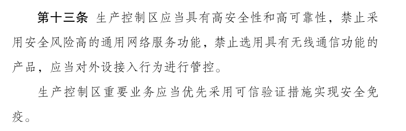 第十三条明确提到:生产控制要业务应当优先采用可信验证措施实现安全免疫,第十六条明确提到:电力监控系统优先选用安全可信的产品和服务,电力监控系统投运前应当进行安全加固,包括主机加固、系统加固等。