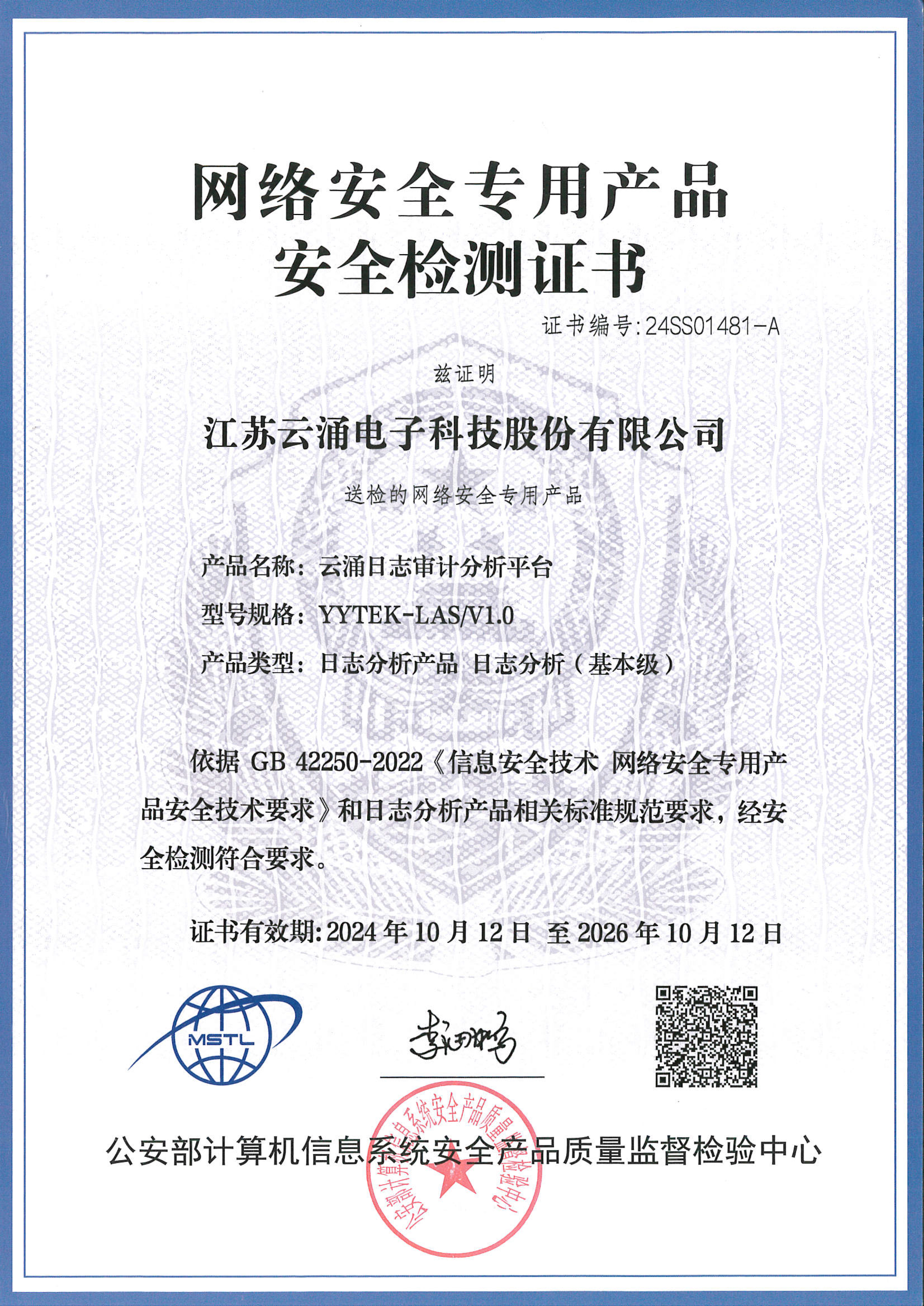 近日,澳门银河网上赌场网站日志审计分析平台顺利通过公安部权威检测机构的严格安全检测,成功获得《网络安全专用产品安全检测证书》,标志着日审平台在产品功能性、兼容性、安全性、稳定性等多个方面均满足检测标准,性能和质量达到先进水平,是满足强制性国家标准的网络安全专用产品。这一成果意义重大,它不仅是公司产品合规的有力证明,还极大提升了澳门银河网上赌场网站的品牌形象,增强了市场竞争力。