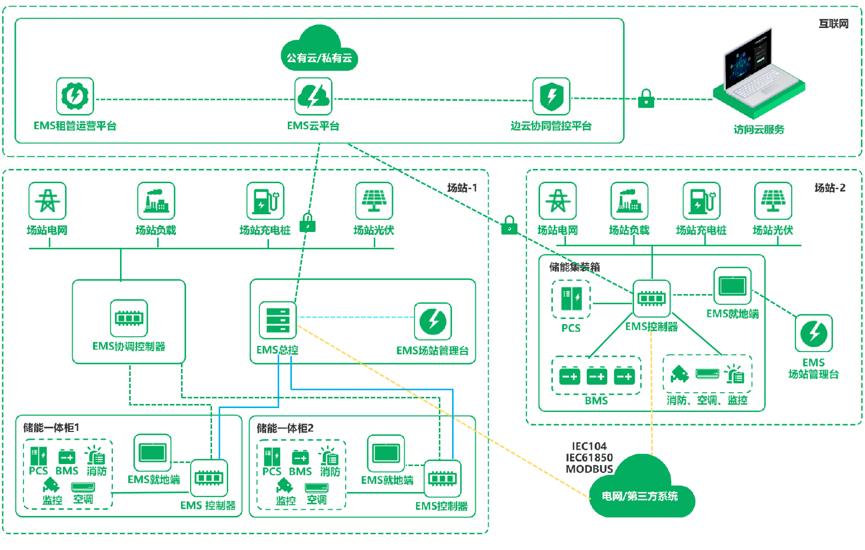 在智慧能源领域,澳门银河网上赌场致力于EMS定制开发多年,产品以标准的基于边缘计算的物联网平台为底座,采用微服务软件架构,利用四遥技术对储能设备进行实时的数据采集与控制,并通过大数据技术对场站的能耗数据进行分析及预测,帮助企业实时了解整个场站电力系统的运行状况,从而结合系统策略,实现对储能系统各个设备的全生命周期管理。