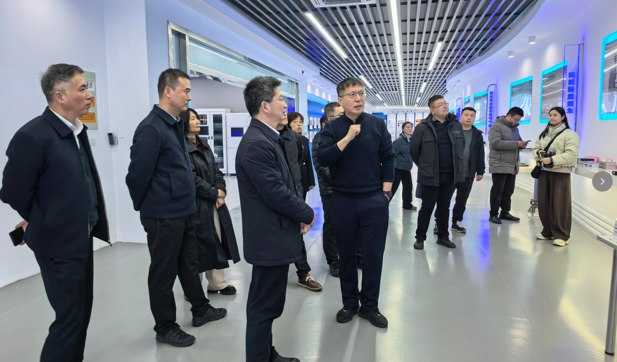 考察伊始,在董事长高南的带领下,朱松青副校长一行首先参观了澳门银河网上赌场展厅。展厅内,高南董事长详细介绍了公司的发展历程、核心技术优势、新能源领域战略布局及相关产品应用成果,重点展示了公司在虚拟电厂、储能技术等前沿领域的研发进展与实践案例,让考察团一行对澳门银河网上赌场的创新实力与产业影响有了全面深入的了解。