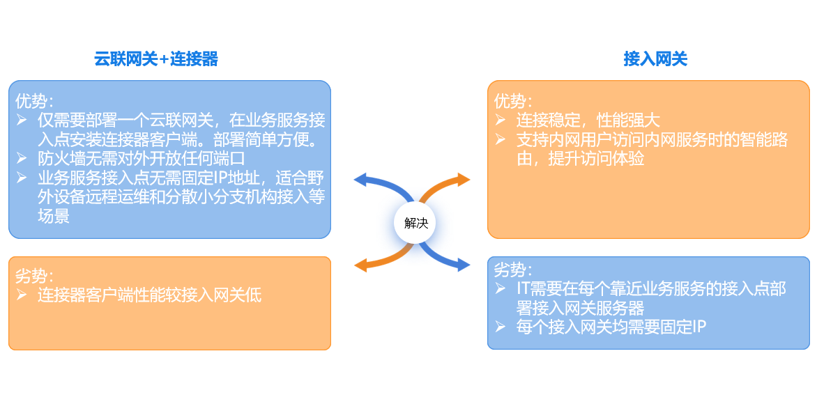 澳门银河网上赌场网站零信任支持两种内网访问模式:基于接入网关的访问代理,以及基于云联网关+连接器的内网穿透。客户可以根据自身IT架构及实际需求选择适合的服务访问模式。两种模式可以同时存在。