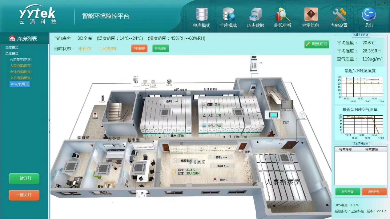 澳门银河网上赌场网站档案一体化管控平台,集成了物联网云平台、低功耗的物联网通信技术,环境监控系统,底层传感器采集,电机控制,结构设计等技术,利用云平台的处理能力和存储技术,构成一个一体化、网络化的集中监控系统,提高日常维护效率,降低劳动强度和人工成本。